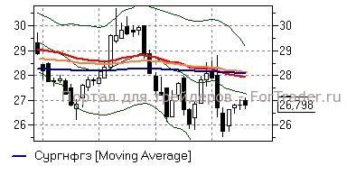 Сургутнефтегаз ао (-0,47%) – акции в ходе восстановления с годовых минимумов подошли к средней полосе Боллинжера дневного графика (27,8 руб), а технические индикаторы при этом дают умеренно положительные сигналы, не исключая движения к указанному значению. Однако даже в случае закрепления выше потенциал роста вполне может ограничиться районом «долгих» скользящих средних (28-28,15 руб), что стоит учитывать игрокам на повышение. Сила восходящего движения ещё весьма невелика, а торопиться с открытием новых «длинных» позиций не стоит.