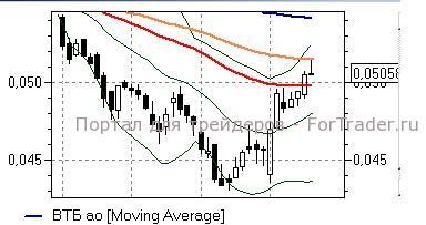 ВТБ (+0,38%) – акции по итогам вчерашнего дня закрепились выше линии EMA55 дневного графика (4,98 коп) и сегодня стремятся к линии EMA100 (5,15 коп), до пробития которой лучше воздержаться от открытия новых «длинных» позиций ввиду входа бумаг в зону перекупленности и опасности их отскока от важного сопротивления. В целом, однако, котировки взяли достаточно уверенный курс на рост, и если им все же удастся закрепиться выше 5,15 коп, впоследствии вполне можно ожидать движения к линии EMA200 (5,40 коп).