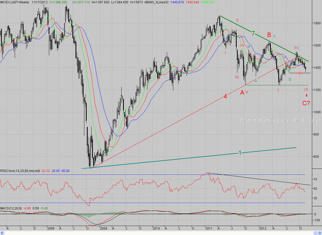 Сегодня заключительный день торговой недели, и она закрывается погранично для покупателей – хотя в течение недели было сильное падение, но впоследствии рынок отыграл больше половины этих потерь, и главное – устоял ключевой уровень поддержки. И сегодня «быкам» желательно подрасти хотя бы на 0,5%, так как в этом случае недельная свеча будет обнадёживающей для них и создаст предпосылки для продолжения контрнаступления на следующей неделе.