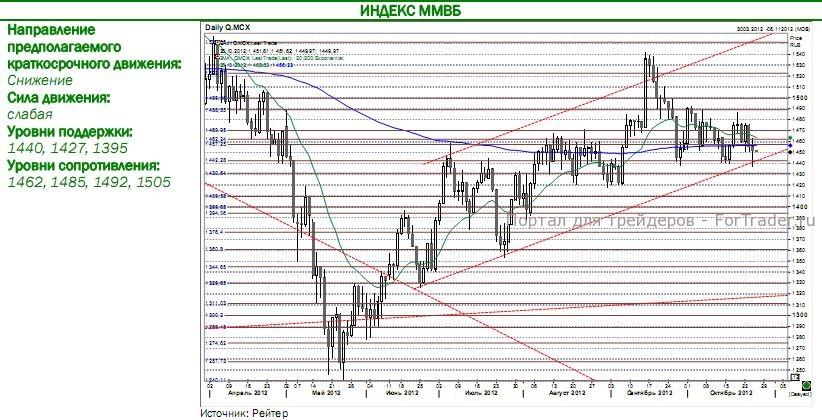 В середине недели на рынках преобладали смешанные настроения на фоне заявлений ФРС, не преподнесших, как и ожидалось, новых сюрпризов, а также слабых данных по Европе. По заявлению Б.Бернанке, программа выкупа активов на рынке ипотечных бумаг продолжится в том же объеме для поддержания таргетируемого уровня инфляции на уровне 2% при сохранении неизменной процентной ставки на уровне 0,-0,25% до2015 г. .На фоне сохранения высокого уровня безработицы ФРС будет способствовать максимальной занятости, а в случае ухудшения ситуации пойдет на дополнительны выкуп активов. ФРС повторила свою сакральную формулу («продолжить пристально мониторить поступающую экономическую и финансовую информацию в ближайшие месяцы»), что указывает на готовность регулятора предпринимать более активные действия по поддержке банковского сектора и сохраняет высокими ожидания по скорому расширению QE3. На продолжающееся замедление мировой экономики указали индекс PMI в промышленности Еврозоны, снизившийся третий месяц подряд до 45,3 п. (минимум за 40 месяцев), индекс делового доверия от Ifo в Германии, упавший шестой месяц подряд (до минимума за 2,5 года), а также рост запасов нефти в США (значительно превысил ожидания) в условиях спада потребления как бензина, так и дизельного топлива, что свидетельствует о слабости в Америке промышленного спроса на энергоносители. Не добавили оптимизма и заявления М. Драги о том, что в ближайшее время экономика ЕС будет оставаться слабой, а в 2013 ожидается лишь очень медленное восстановление, а также о том, что ЕЦБ будет осуществлять интервенции лишь в отношении стран с устойчиво развивающейся экономикой. В отношении договоренности Греции с тройкой кредиторов пока нет определенности. Так, с одной стороны, министр финансов страны Я. Стурнарас заявил, что договоренность достигнута, и Греция и получит дополнительные два года на реализацию экономической программы. С другой, представитель ЕЦБ Асмуссен и официальный представитель еврокомиссара О.Рена, опровергли информацию, что Греция добилась уступок по срокам для достижения цели по дефициту бюджета на уровне 3% от ВВП, а также для проведения приватизации и реализации структурных реформ. Бюджетные меры Греции подлежат одобрению греческим парламентом, что станет тестом для правящей коалиции, учитывая, что 2012-2013 гг. должны будут сокращены 25 тыс. госслужащих и повышен пенсионный возраст на 2 года до 67 лет. Свое решение законодатели должны будут принять до 12 ноября, когда министры финансов еврозоны соберутся для принятия решения о выделении Греции очередного транша.
