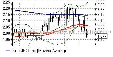 Холдинг МРСК (+0,15%) – акции по итогам прошлой недели закрепились ниже всех ключевых линий дневного графика (ближайшие в районе 2,06 руб) и приостановили снижение в районе минимумов прошлого года. Технические индикаторы дают умеренно негативные сигналы и указывают на наличие у бумаг потенциала падения до входа в зону перепроданности. Котировки в случае закрепления ниже ближайшей поддержки вполне могут направиться в район 1,9 руб и ниже.