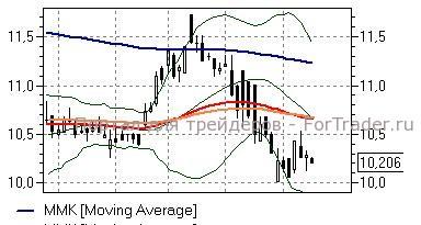 ММК (-0,68%) – акции на прошлой неделе корректировались от годовых минимумов и возвращались в район средней полосы Боллинжера дневного графика (10,5 руб), до закрепления выше которой не стоит рассчитывать на возобновление уверенного роста. Технические индикаторы дают разнонаправленные сигналы, с одной стороны, указывая на возможность отскока ближе к 10,5-10,67 руб (также «долгие» скользящие средние), но и предупреждая о наличии потенциала снижения до входа в зону перепроданности. Игрокам стоит действовать по факту преодоления котировками ближайших поддержек и сопротивлений.