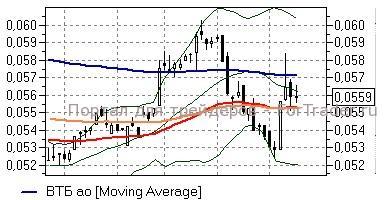ВТБ (+0,18%) – акции на прошлой неделе не смогли устоять выше последнего важного сопротивления дневного графика – линии EMA200 (район 5,70 коп), опустившись ближе к средней полосе Боллинжера и другим «долгим» скользящим средним (5,54-5,56 коп), которые пока удерживают по итогам дня. Технические индикаторы дают разнонаправленные сигналы, указывая на уменьшение силы восходящего движения и опасность развития снижения бумаг при закреплении ниже 5,54 коп. «Быкам» до преодоления указанной отметки имеет смысл сохранять свои позиции, однако, соблюдать повышенную осторожность.