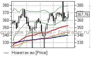 Новатэк (+1,65%) – акции на прошлой неделе, несмотря на коррекционное снижение, устояли выше средней полосы Боллинжера дневного графика (361,2 руб), от которой пытаются развить восходящее движение при умеренно положительных технических сигналах. До преодоления указанной отметки стоит удерживать «длинные» позиции с расчетом на движение к недавним максимумам – в обратном случае бумаги могут развить падение в район линии EMA55 (352,9 руб) и ниже.