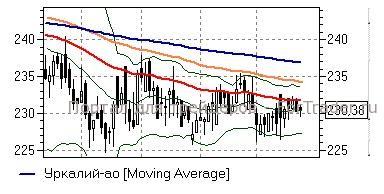 Уралкалий (+0,02%) – акции продолжают чувствовать себя слабо и торгуются ниже «долгих» скользящих средних дневного графика (231,7-237 руб), до преодоления которых не стоит рассчитывать на возвращение «быков» на рынок. Технические индикаторы дают умеренно негативные сигналы, пока что не предупреждая о грядущей смене настроений. Игрокам стоит помнить, что даже в случае возобновления оптимизма в бумагах, их повышение вполне может ограничиться указанными выше отметками.