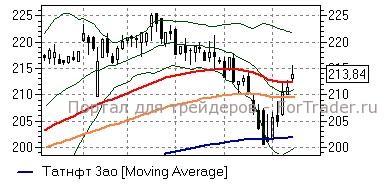 Татнефть ао (+1,37%) – акции сегодня торгуются выше последней важной линии дневного графика 212,3 руб (EMA55), а на прошлой неделе преодолели также среднюю полосу Боллинжера (211 руб). Способность удержать указанные отметки будет говорить о перспективах развития повышения в район верхней полосы Боллинжера (222 руб), чему не препятствуют технические индикаторы – котировки ещё имеют потенциал роста до входа в зону перекупленности. Игрокам, однако, стоит внимательно следить за способностью акций удержать ближайшие поддержки.