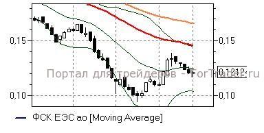 ФСК ЕЭС (+0,83%) – акции по итогам прошлой недели закрепились ниже средней полосы Боллинжера дневного графика (0,125 руб), к которой стараются вернуться сегодня. Однако в целом бумаги выглядят достаточно слабо и пока не закрепились выше указанной отметки, сохраняют предрасположенность к движению в район нижней полосы Боллинжера (0,104 руб). Технические индикаторы дают негативные сигналы, предупреждая «быков» о необходимости дождаться преодоления важного сопротивления для открытия позиций.