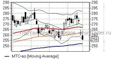 МТС (-2,42%) – акции на прошлой неделе опустились ниже средней полосы Боллинжера дневного графика (269,5 руб) и также преодолели ряд «долгих» скользящих средних, стремясь в район последней – EMA200 (252 руб), достижения которой в целом не исключают технические индикаторы. На данный момент лучше воздержаться от открытия по бумагам «длинных» позиций, а сыграть наверх можно будет в район отметки 252 руб при наличии положительных фундаментальных сигналов.