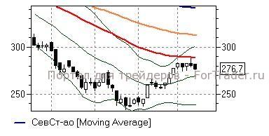 Северсталь (-1,98%) – акции на прошлой неделе остановили рост у линии EMA55 дневного графика (288,8 руб), от которой начали движение вниз и при закреплении ниже ближайшей поддержки вполне могут взять курс на среднюю полосу Боллинжера (269,9 руб) и ниже. Технические индикаторы дают умеренно негативные сигналы, не исключая подобного сценария, а отменой негативного сигнала служило бы закрепление как минимум выше 285,5 руб.