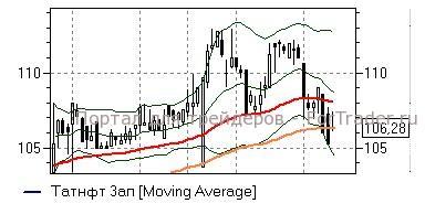 Татнефть ап (+0,95%) – акции сегодня предпринимают попытку отскока от достигнутых минимумов, однако, в целом чувствуют себя слабо и ещё имеют потенциал падения до входа в зону перепроданности. На развитие коррекционного роста в район средней полосы Боллинжера дневного графика (109 руб) стоит рассчитывать не ранее способности бумаг закрепиться выше ближайшего сопротивления 107 руб. При обратном сценарии «быки» рискуют столкнуться с возобновлением нисходящего движения и обновлением минимумов.