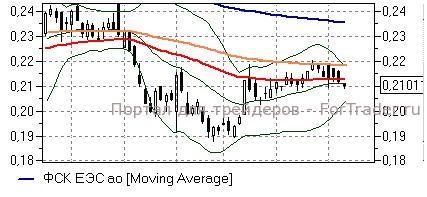 ФСК ЕЭС (-0,78%) – акции сегодня торгуются ниже «долгих» скользящих средних и средней полосы Боллинжера дневного графика (0,211-0,218 руб), что указывает на опасность развития нисходящего движения как минимум в район нижней полосы Боллинжера (0,204 руб). Технические индикаторы дают умеренно негативные сигналы, не исключая развития снижения. Играть наверх стоит лишь в случае появления значимых положительных фундаментальных факторов.