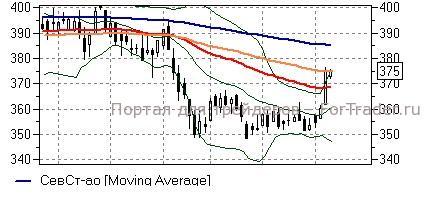 Северсталь (+0,19%) – акции в ходе вчерашнего дня преодолели линию EMA55 дневного графика (368,7 руб) и остановили повышение у линии EMA100 (375 руб), у которой расположены и сегодня. Технические индикаторы дают положительные сигналы, не исключая развития роста бумаг и говоря о наличии потенциала восходящего движения до входа в зону перекупленности, но при этом необходимо дождаться закрепления выше ближайшего сопротивления. В обратном случае акции могут скорректироваться в район линии EMA55 и ниже. При пробое 375 руб ближайшей целью роста станет район 385 руб (линия EMA200).