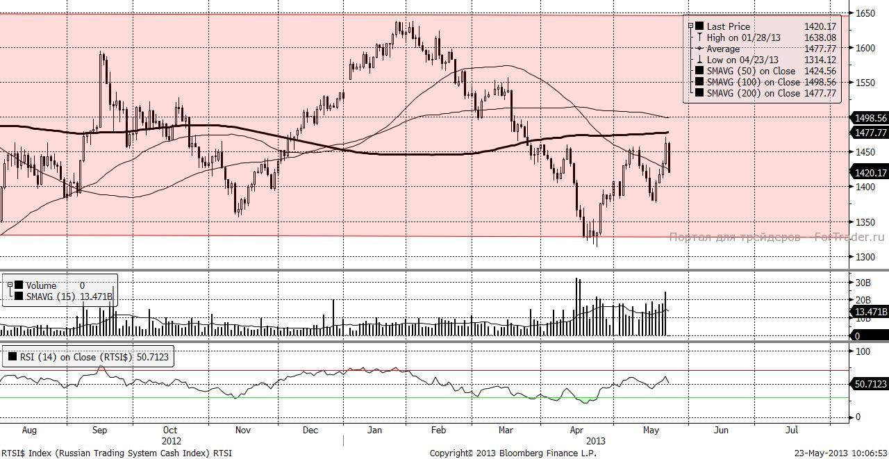 Сегодня русский рынок акций жестко идет на юг, индексы и фишки в красном цвете. Мировые индексы и цены на сырье в минусе. Участники мировых рынков опасаются возможного прекращения программы стимулирования экономики США. Как мы и ожидали, падение на мировых рынках началось в двадцатых числах мая. Перефразируя Чингисхана, не стоило обижать слабого детеныша, возможно, он окажется сыном медведя.