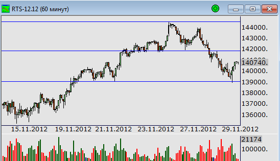 Накануне котировки проверили на прочность отметку 139000 пунктов, которая была последним сдерживающим фактором на пути цен к недавним минимумам. Покупатели смогли удержать данный уровень, что привело к отскоку. Таким образом, сейчас  имеются все предпосылки к тестированию осевой линии краткосрочного бокового канала, расположенной у отметки 142000 пунктов. Преодоление этого уровня позволит фьючерсу перейти в диапазон 142000-145000. В противном случае цены вновь вернуться в район отметки 139000.