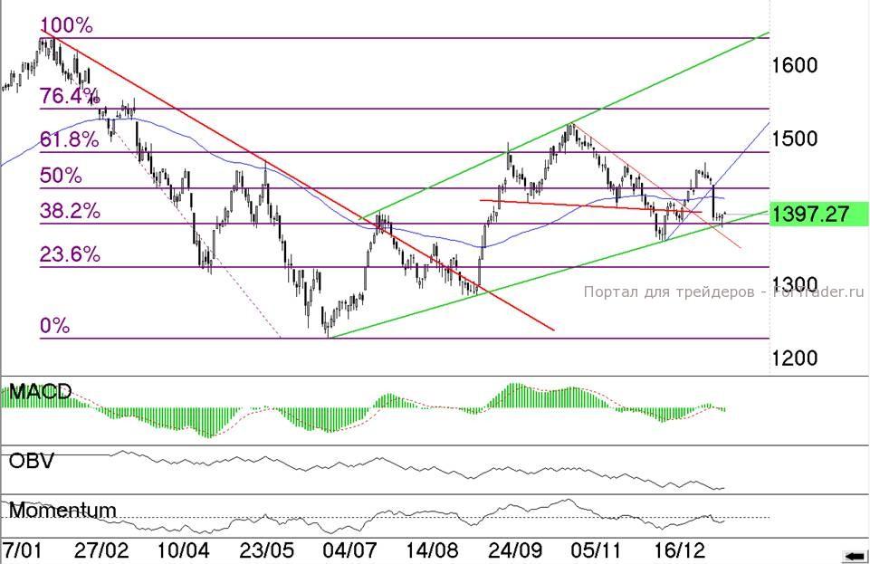 Мне кажется, ему легко можно простить выход за июльский восходящий тренд, ведь он был осуществлен так деликатно, только тенью пятничной свечи. И, казалось бы, тем, кто торгует фьючерсом, на этот индекс можно посоветовать на покупку, ведь на нем есть открытая цель 1433 пункта, но, учитывая общую картинку рынка, не ждите легких побед. Соотношение риска и доходности при покупке фьючерса на индекс РТС — примерно 1 к 2 – хорошее для торговли внутри дня, но не идеальное при указанных обстоятельствах!