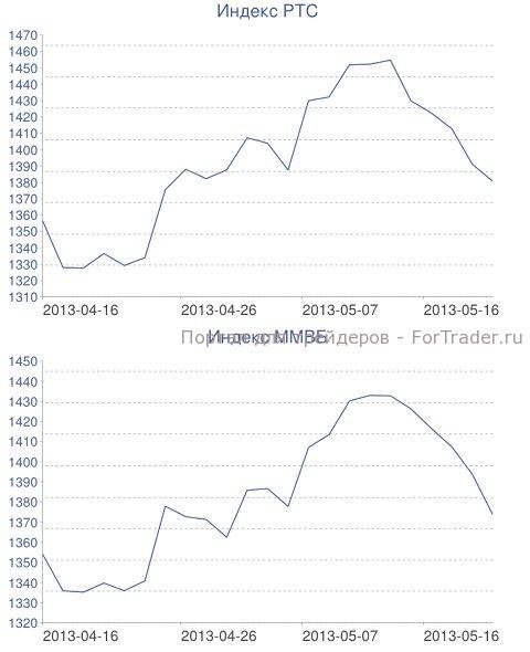 Американские площадки вчера впервые после 19 дневного закрытия в плюсе, не смоги переписать очередной исторический максимум и закрылись вблизи минимальных отметок сеcсии, потеряв при этом около 0.3%- 0.5%. Вчерашнее негативное закрытие в США было связано с выходом слабой статистики поэтому говорить о развороте американского рынка пока рано. Помимо слабых данных по рынку труда в США, вчера вышли просто ужасные данные по индексу деловой активности в обрабатывающей промышленности округа ФРБ Филадельфии, который просто рухнул до значения -5.2, против ожиданий +2.4, а число закладок новых домов в апреле в США упало сразу на 16.5%.