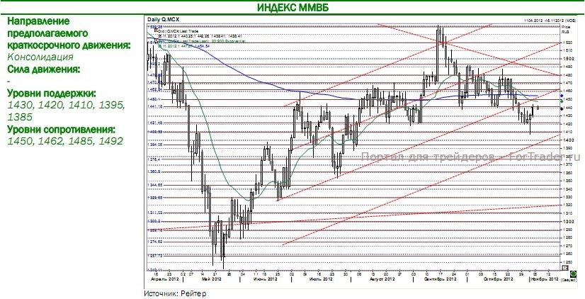 Российский рынок акций будет отражать в первые часы торгов негативную динамику на внешних рынках в пятницу-понедельник и может откатиться к 1430 ММВБ. Вместе с тем, сегодня утром рынки проявляют сдержанный оптимизм, и снижение может оказаться краткосрочным, в особенности, учитывая близость сильных поддержек. Торговая активность на рынке, по нашему мнению, может вновь сохраниться на пониженном уровне — инвесторы могут предпочесть не предпринимать активных действий до результатов выборов в Америке.