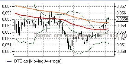 ВТБ (+0,22%) – акции после вчерашнего пробития линии EMA100 дневного графика (5,45 коп) сегодня продолжают торговлю выше указанной отметки, но при этом находятся в зоне перекупленности, что предупреждает о рисках развития коррекции с достигнутых вершин с первой целью движения к указанной отметке. Сила восходящего движения при этом также высока, что говорит об актуальности сохранения «длинных» позиций при способности бумаг удержать ближайшую поддержку. Её преодоление, однако, служило бы первым сигналом начала грядущего снижения.