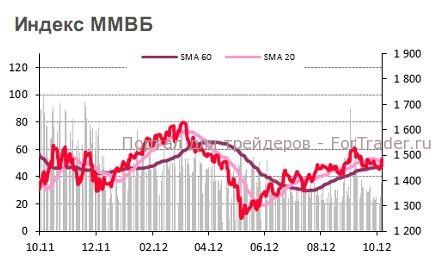 На момент написания обзора индекс ММВБ вырос на 0.68% до 1484.4. На фоне растущих аппетитов к риску на глобальных площадках российский рынок набрал ход и вырос, преодолев сопротивление на 1470 (20-дневная средняя). Таким образом, теперь индекс ММВБ торгуется выше коридора средних с сильной поддержкой на 1458 (200-дневная средняя). Следующая поддержка на 1424 (100-дневная средняя).