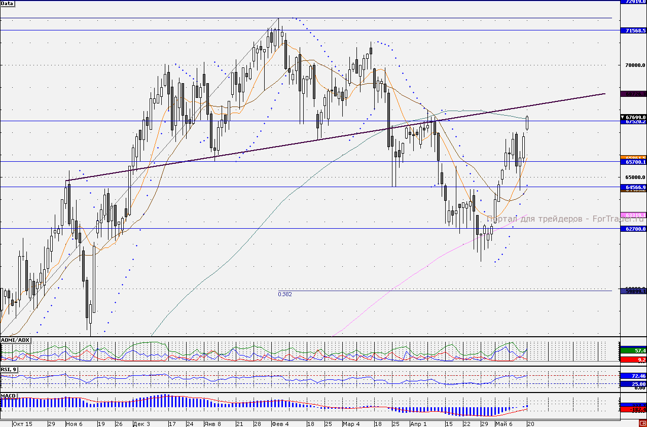 Динамику лучше рынка в первой половине дня демонстрируют привилегированные акции «Транснефти». На фоне сообщении о том, что компания выступила с предложением к правительству отказаться от участия в разработке «соглашения о транзите трубопроводным транспортом СНГ», предполагающем предоставление свободного доступа странам СНГ к газотранспортным системам «Газпрома» и «Транснефти», бумаги начали торговую сессию с гэпом вверх. В первой половине дня акции пробили ближайшее сопротивление в виде 100- дневной скользящей средней (67 625 руб.), закрепление выше данной отметки выступит позитивным сигналом для «быков». Показания трендовых индикаторов не исключают вероятности продолжения позитивной динамики акций. Так индикатор ADMI/ADX показывает, что преимущество сохраняется на стороне покупателей (линия «быков» находится выше линии «медведей»), при этом график индикатора MACD (12;26;9) растет на положительной территории. Так при сохранении позитивных настроений следующей целью для «быков» выступит отметка 68 100 руб., при тестировании которой спекулятивные «лонги» стоит сокращать, так как акции достигли зоны перекупленности (график осциллятора RSI(9) превысил сигнальное значение 70 пунктов). Наш 30-минутный торговый робот находится в «лонгах», удерживая длинные позиции от отметки 66 326 руб.