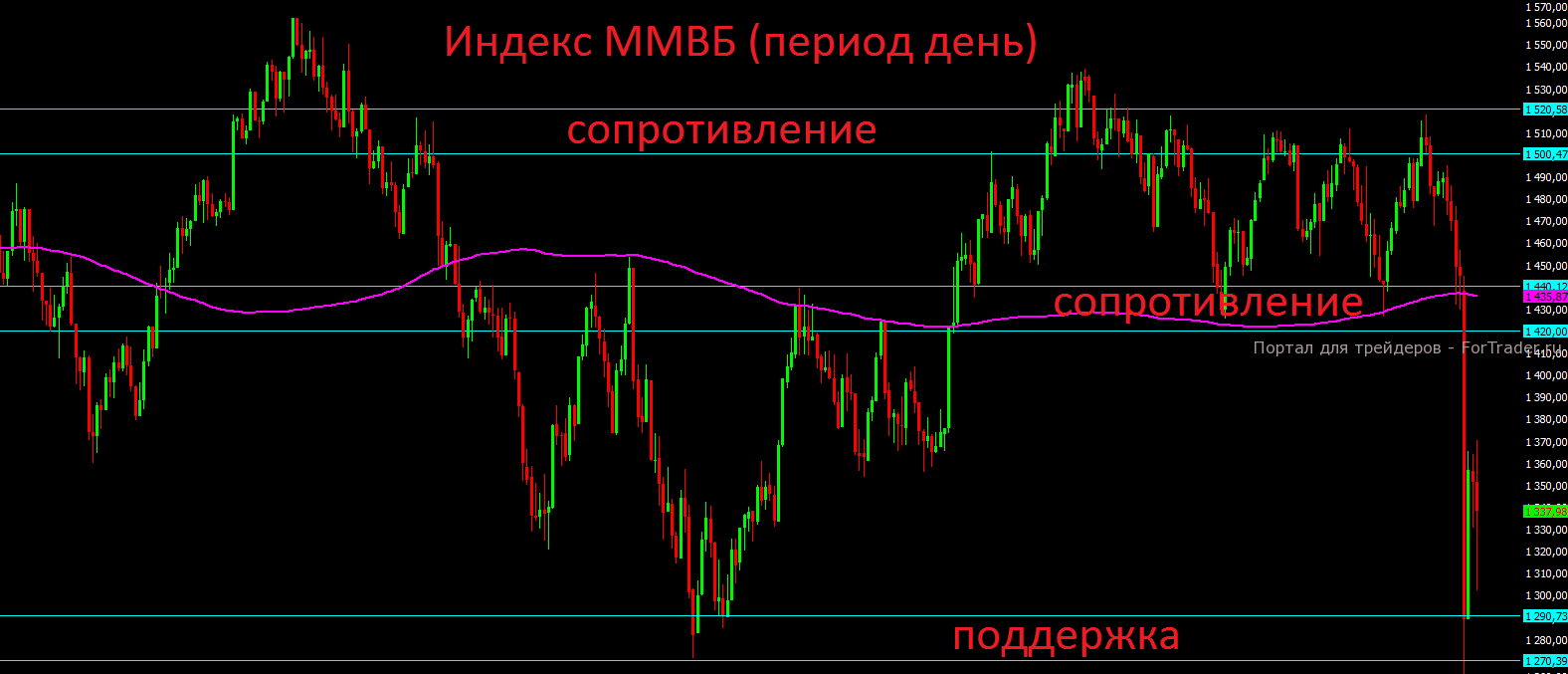 Если посмотреть на техническую картину индекса ММВБ, то и здесь пока нет даже намёков на рост.