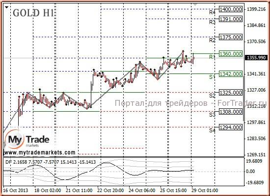Цены на золото оставались у месячных максимумов в ожидании главного события недели — заседания ФРС США. Внутри дня цены на золото достигали отметки 1361,70, закрыв по профиту сделку по рекомендации.