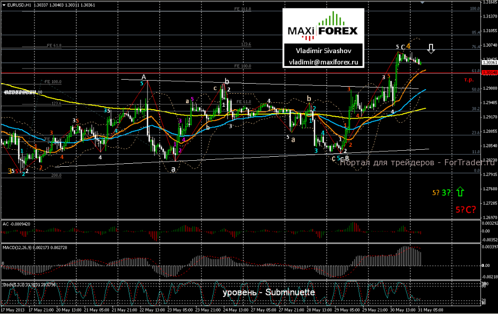 В нашем прогнозе на пятницу, предполагаем – снижение курса единой европейской валюты, первоначально, к уровню дневного разворота.