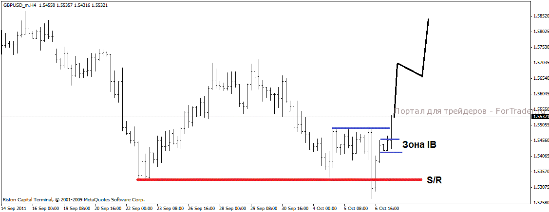 Фунт в отличии от евро был как всегда куда более волатильным. Резкое снижение к S/R уровню затем и его пробой могли повргнуть в шок, но пробой оказался ложным и уже на следующем баре цена вернулась на уровень. В данный же момент на графике видно что произошел пробой зоны внутреннего бара. Рост продолжается. В дальнейшем нас очевидно ожидает продолжение роста пары.