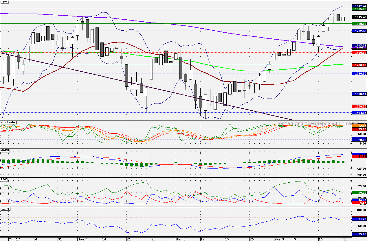 Ближайшие уровни поддержки: 1800,00/1780,00/1768,20/1750,00