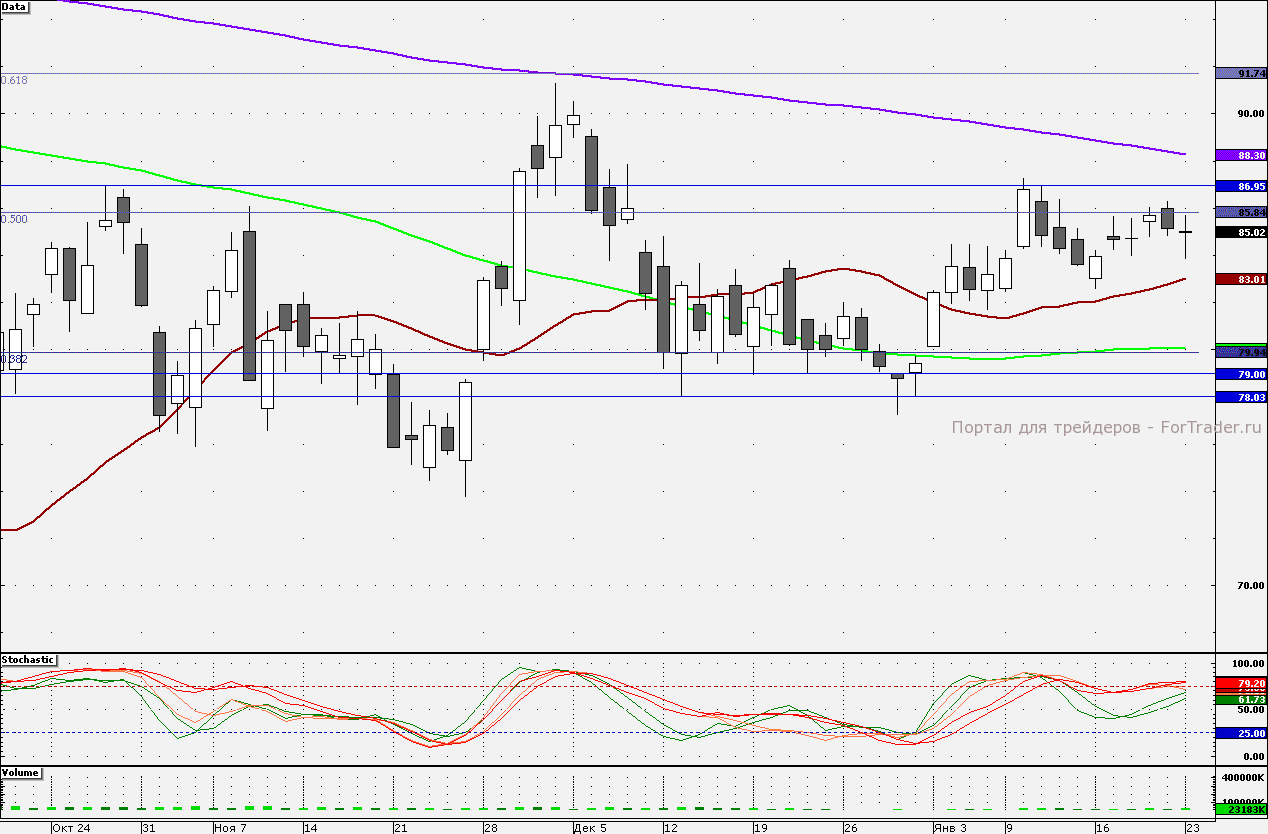 Ближайшие уровни сопротивления: 87,00/88,30/90,00/91,28/92,50
