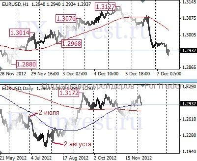 На момент написания комментария евро/доллар торгуется около 1.2934.