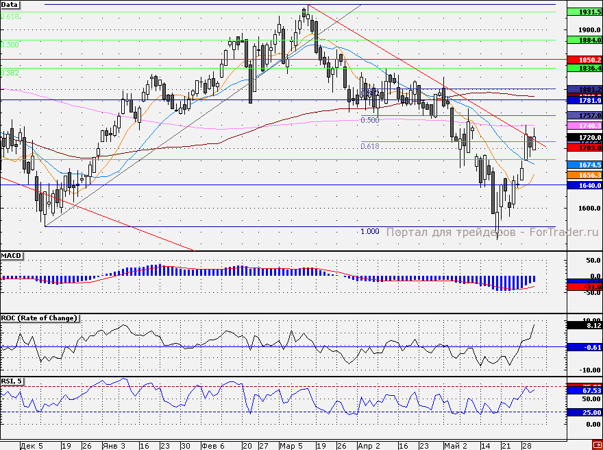 Ближайшие уровни поддержки: 1700,00/1680,00/1674,50/1660,00