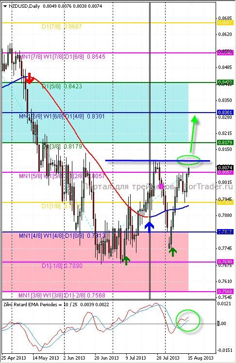 Торговая рекомендация: покупаем пару при пробитии и четком закреплении выше сильного промежуточного уровня сопротивления 0.8100 малыми объемами, при этом наращиваем позиции в случае укрепления пары выше отметки 0.8150 с первой целью 0.8200, и более дальней целью 0.8300.