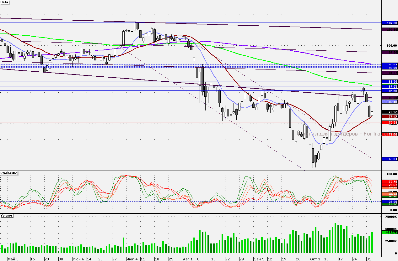 Поддержкой для акций Сбербанка является 21-дневная скользящая средняя – 77,47 руб. Далее поддержкой станет 76,40 руб. Сегодня состоится наблюдательный совет по итогам работы банка за три квартала. Сопротивлением является 80 руб., от данной отметки «лонги» стоит фиксировать.