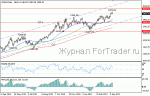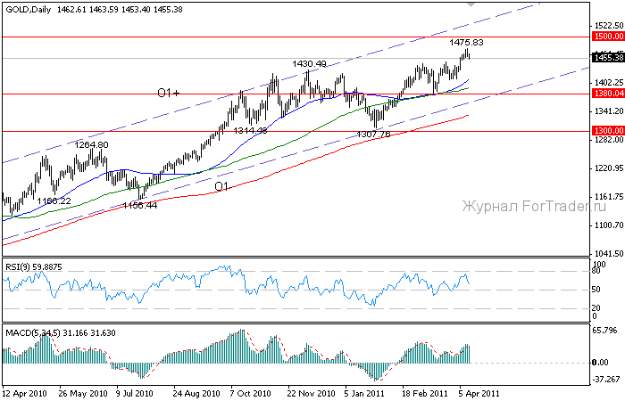 Представители Африканского союза в воскресенье после встречи с ливийским лидером Муамаром Каддафи сообщили, что он принял их предложение о прекращении боевых действий, однако пока не ясно, последует ли за этим его отставка. Тем не менее, намек на прекращение огня в Ливии оказал стабилизирующее воздействие на нефтяные котировки и ослабил геополитическую напряженность. Кроме того, в США лидеры Республиканской и Демократической партии достигли соглашения по вопросу сокращения расходов до конца текущего финансового года, не допустив приостановки работы федерального правительства. Это способствовало снижению политических рисков в США и спровоцировало небольшой рост американской валюты. В совокупности эти факторы привели к фиксации прибыли в золоте после его рекордного роста, в результате чего наблюдалось снижение котировок металла на протяжении всего торгового дня.