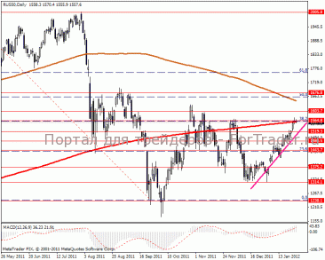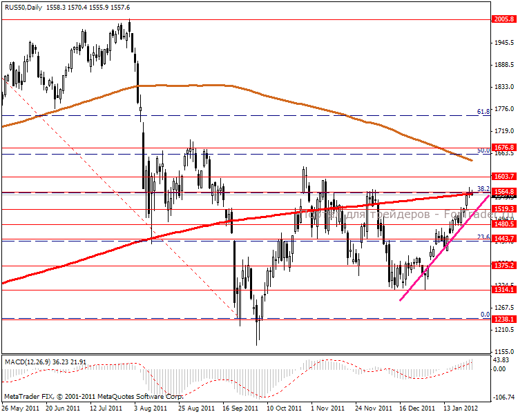 Дневной график говорит о взятии следующей цели 1660 пунктов после незначительной коррекции. Среднесрочные цели по-прежнему остаются в восходящей тенденции и тестирование уровня 1676 пунктов может произойти уже в начале следующего торгового месяца. MACD демонстрирует восходящее движение.