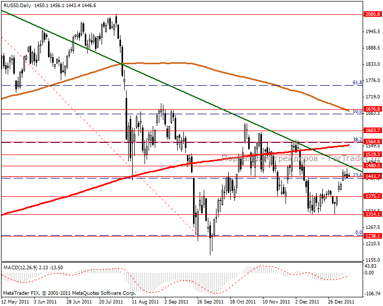 Дневной график говорит о подходе к 1478 пунктов в ближайшее время. Следующая цель 1564 пункта, однако данный боковик может затянуться ненадолго, чем отложит исполнение этого сценария на 1-2 торговых дня. Среднесрочное направление по-прежнему ожидаем к 1640-1660 пунктов.