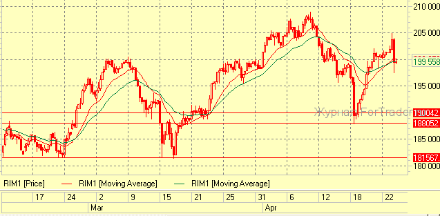 - Если наш предположения о развороте рынка верны, то вполне уместно предположить, что в ближайшие недели фьючерс на индекс РТС может снизиться в район поддержки 180 000 пунктов.
