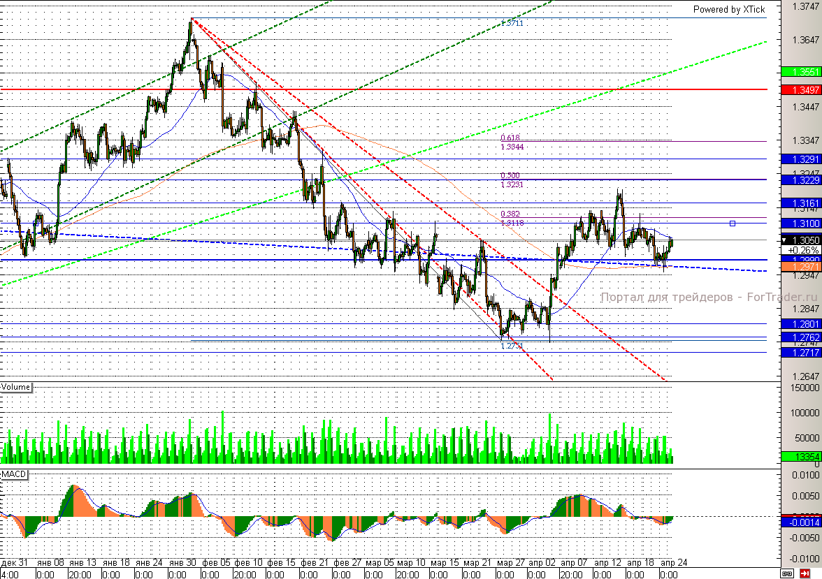 С технической точки зрения сильные колебания по паре могут начаться лишь после ее ухода ниже отметки 1,298 или пробоя вверх 1,31. Целями в таком случае станут 1,28 и 1,32 соответственно.