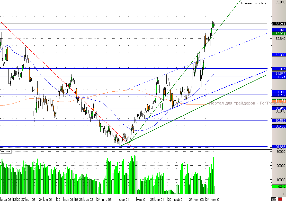 Таким образом, на рубль сейчас воздействуют противоборствующие факторы, которые могут и далее сдерживать рост российской валюты. Ближайшее сопротивление по данной паре расположилось на уровне 33,3 и поддержка находится в районе 33.