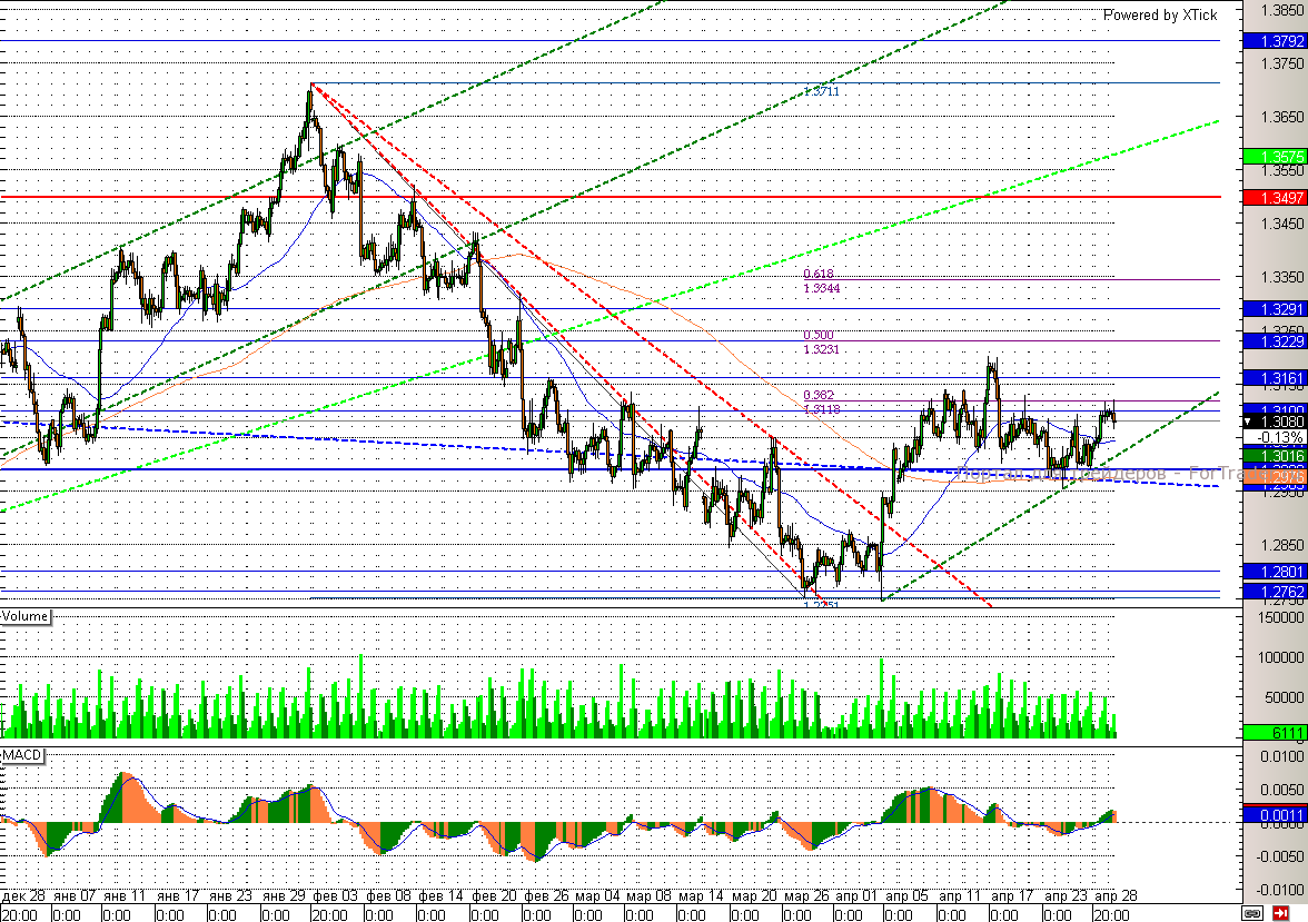 Европейской валютой сегодня движут макроэкономические данные по региону. Розничные продажи в Германии за март снизились на 0,3%, уровень безработицы остался на уровне 6,9%, а потребительское доверие к стране в мае выросло до 6,2. При этом потребительские расходы во Франции за март выросли на 1,3%, а ВВП Испании ожидаемо спустился на 0,5%. Таким образом, данные вышли в смешанном ключе, но умы участников уже полностью начали переключаться на предстоящие заседания ЕЦБ и ФРС. В свою очередь данные заседания несут смешанные ожидания для европейской валюты, ведь на заседании ЕЦБ вполне может быть снижена процентная ставка, что негативно для валюты региона.