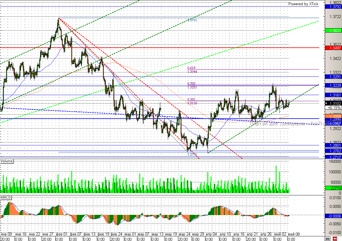 Между тем данная валютная пара в последнее время никак не может определиться с краткосрочным трендом. Еще накануне тренд был пробит вниз, но уже сегодня евро снова пытается уйти выше. Таким образом, евро/доллар продолжает торговаться в узком диапазоне между 1,305 и 1,315. Пробой одной из данных отметок, вполне может стать сигналом к началу сильного движения.