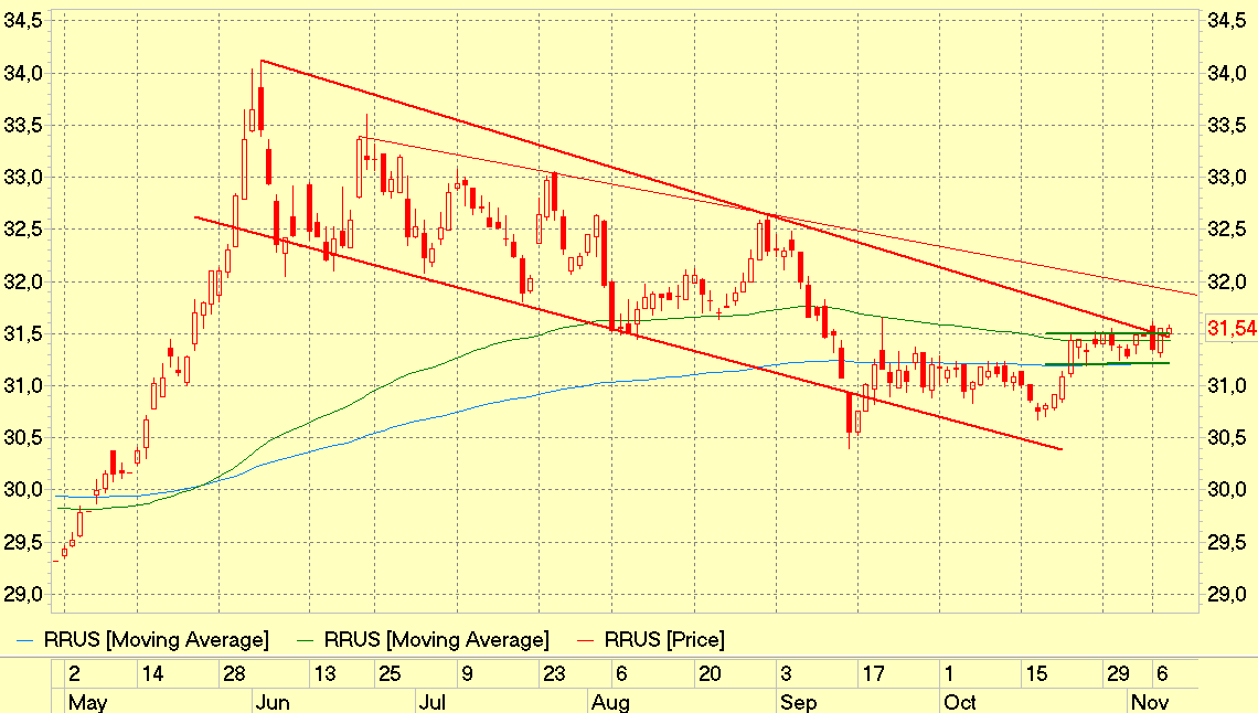 ·         Понижательный канал с июня по ноябрь в USD/RUR напоминает фигуру продолжения ТА «флаг», реализация которой может означать обновление максимумов года в районе 34.00.