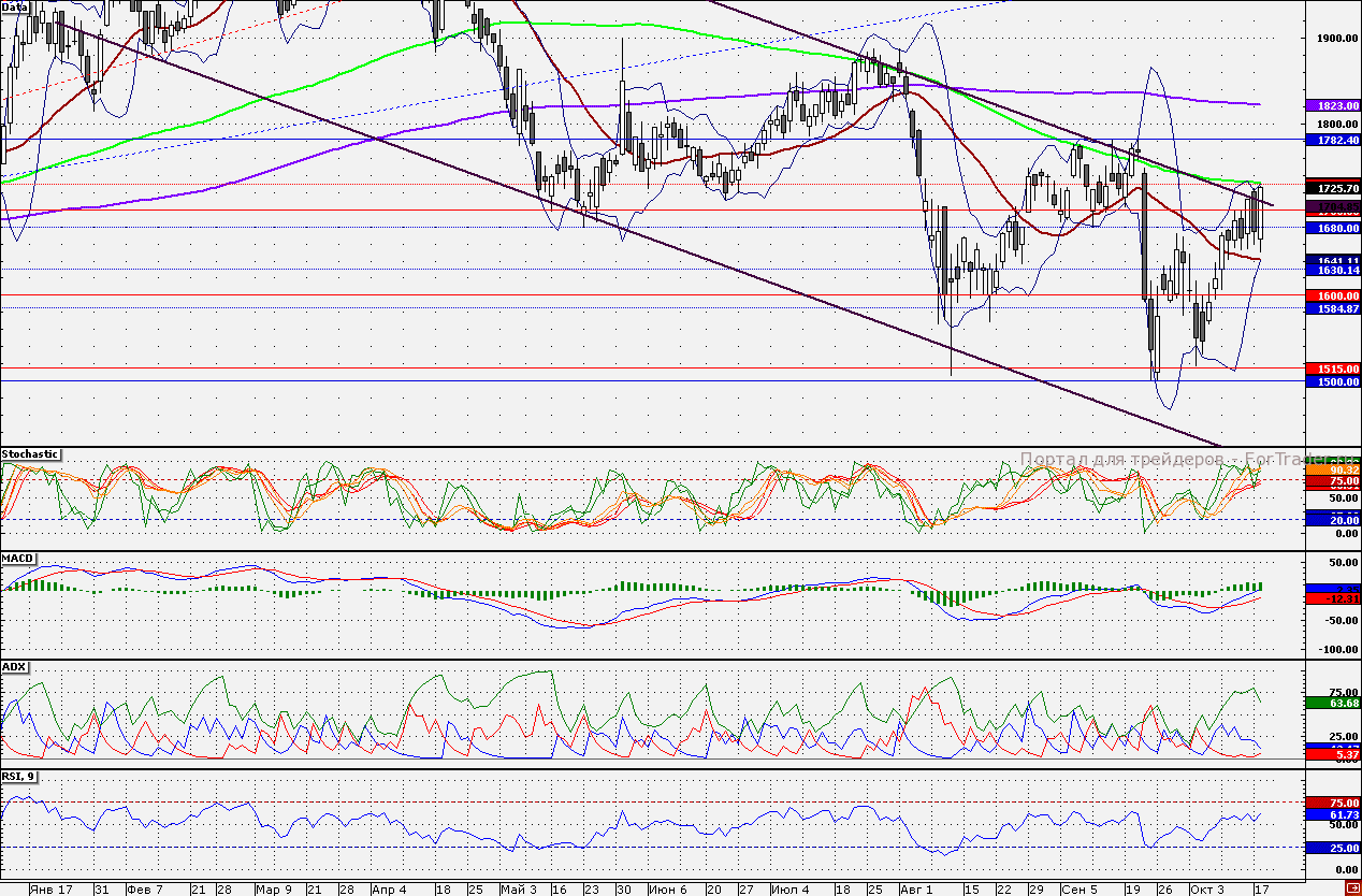 Ближайшие уровни поддержки: 1700,00/1650,00/1641,64/1630,00