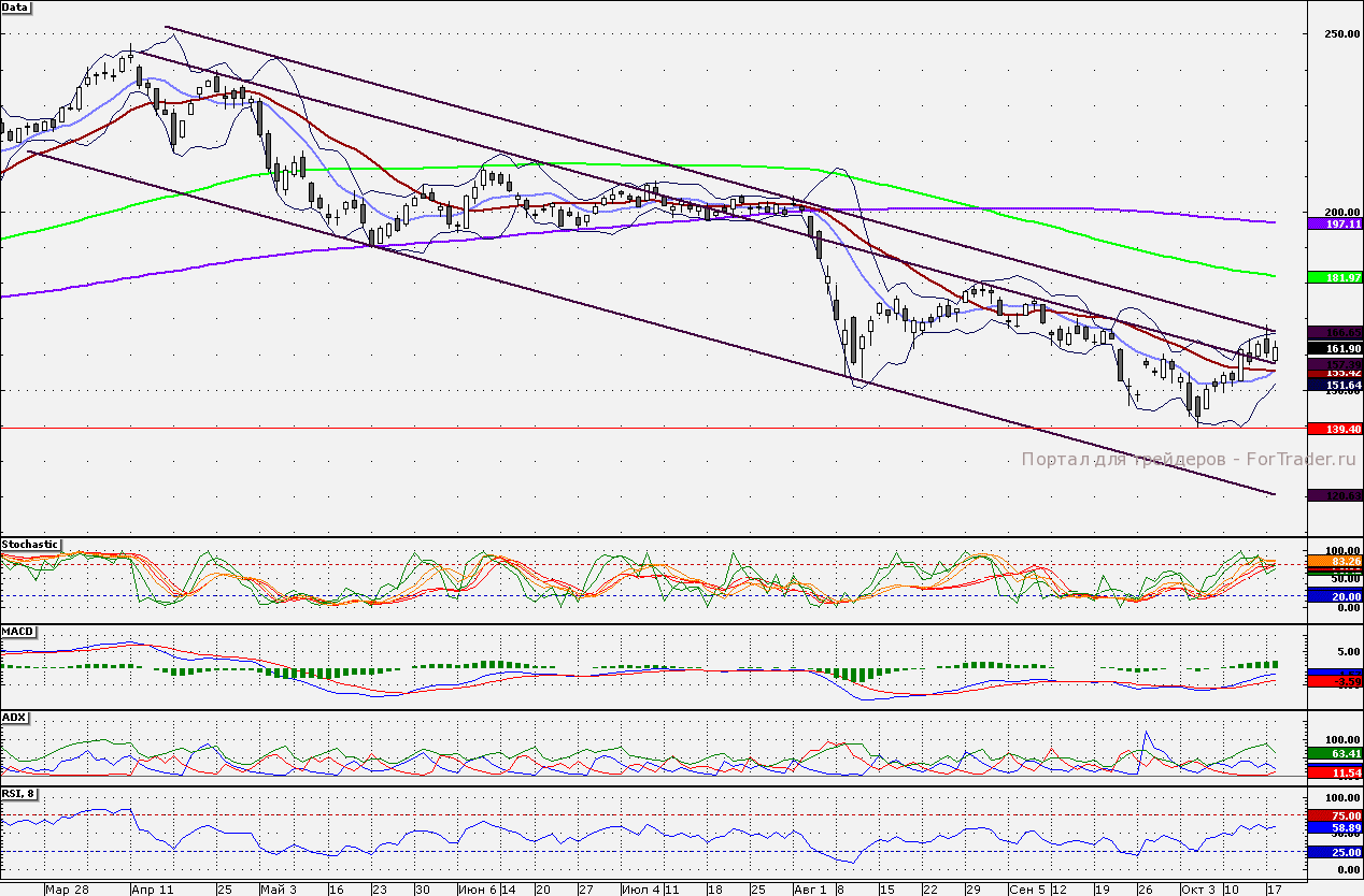 Акции компании в ближайшее время могут выглядеть лучше рынка из-за ожидания отчетности, которая будет оглашена 21 октября. Сопротивлением является локальный максимум 168,36 руб., пробитие вверх которого может увести акции в район 180 руб. Поддержкой является 157 руб. и 155,42 руб.