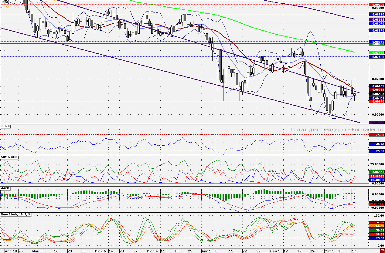 Акции ВТБ накануне вновь закрылись выше 6,5 коп. сопротивлением является 21-дневная скользящая средняя – 6,712 коп. Привлекательным уровнем для сокращения «лонгов» является 6,8 коп. Наращивать позиции стоит от 6,5 коп..