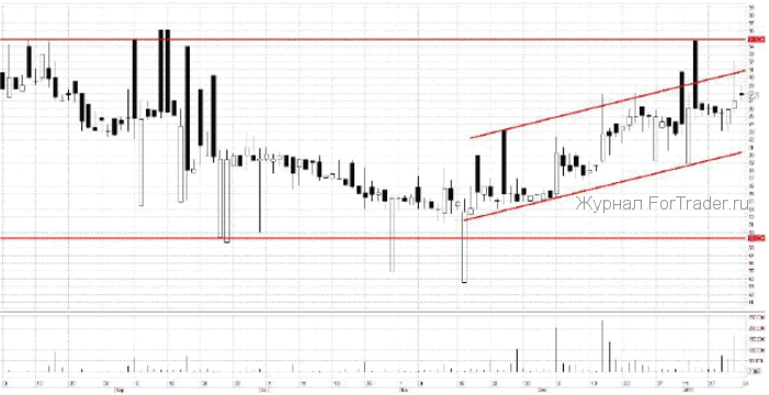 Рассмотрим акции компании с позиции технического анализа. Довольно продолжительный период времени котировки торгуются в рамках ценового коридора 70 – 95 р. Последние два месяца котировки торгуются в восходящем канале с текущими границами 80 – 90 р. Для определения направления дальнейшего движения участникам торгов необходимо дождаться выхода из узкого восходящего диапазона. В случае выхода из которого котировки двинутся к границам ценового коридора 70 – 95 р.