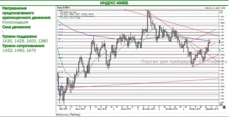 Российские индексы: продолжение роста рынка, тест 1450 ММВБ