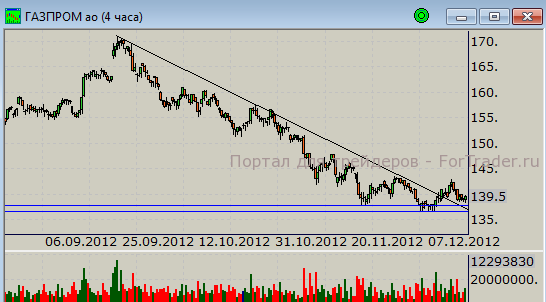 Цены пробили осенний нисходящий тренд. В настоящее время идет тестирование локальной поддержки в районе отметки 138 рублей. С технической точки зрения есть основания ожидать возобновление роста котировок с очередным тестированием отметки 143 рубля. При таком сценарии развития событий на этот раз покупатели будут иметь больше шансов в его преодолении.