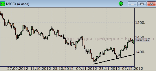 Дальнейшее движение индексов будет проходить в новом диапазоне – 1420 – 1445 пунктов. Для прорыва уровня 1450 пунктов нужно, чтобы аппетит к риску повысился, чего мы не наблюдаем с утра.